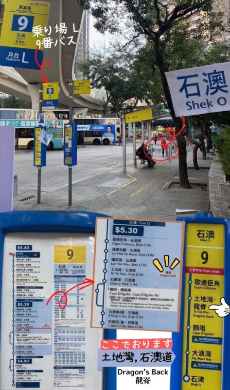⭐路線:MTR 筲箕湾駅 A3出口 → Bus 9 / 赤ミニバス → 土地灣, 石澳道