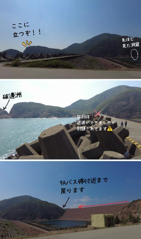 破邊洲までの「防波堤からの急斜面近道」が封鎖されたのでダム入り口の