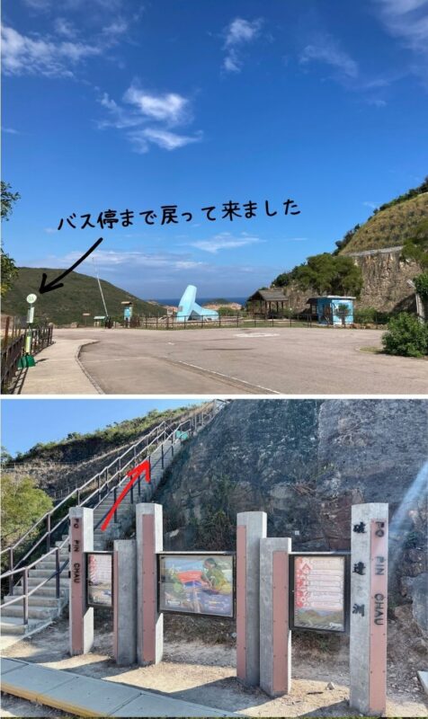 こんな感じでバス停🚏「9A」付近まで戻ります。階段を上り破邊洲を目指しましょう!